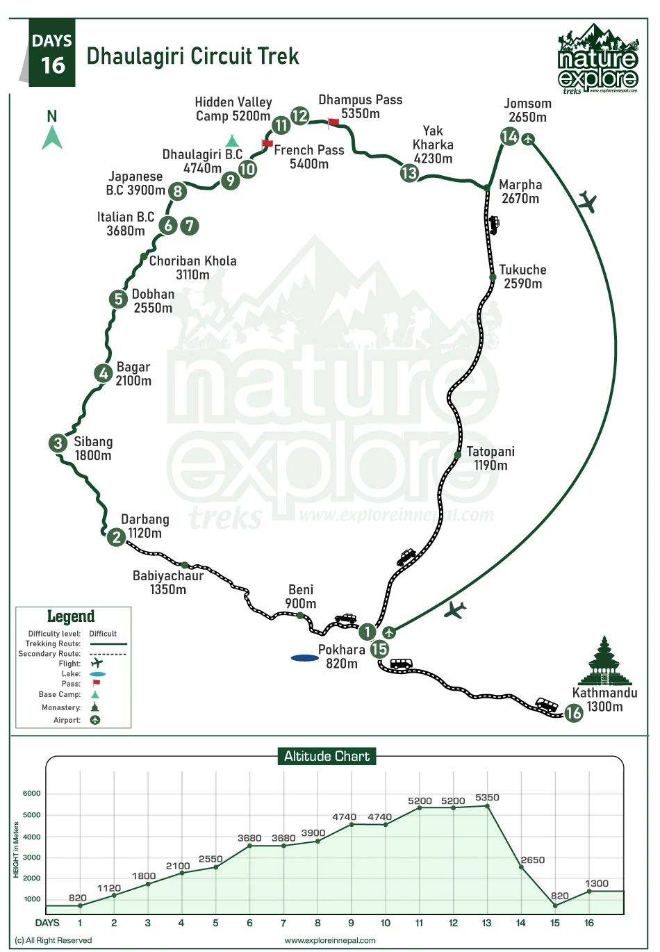 Dhaulagiri Circuit terrain and Length
