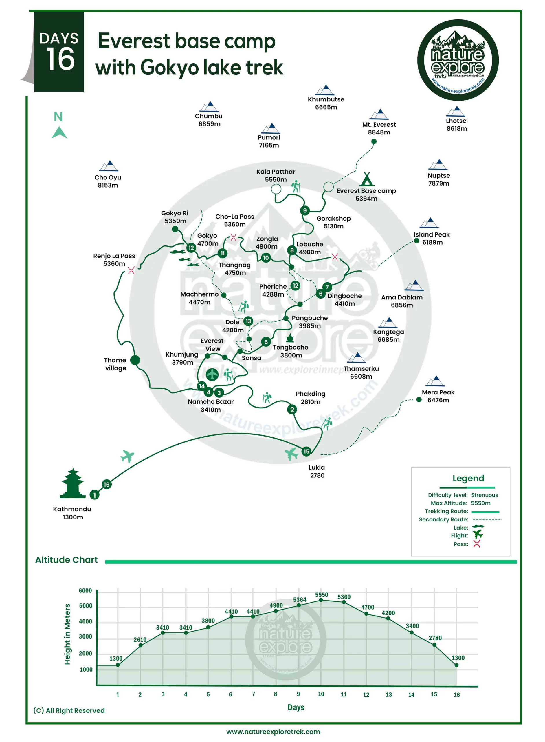 We will spend the night at an altitude of more than 5000 m at Gorakshep and hike to Kala Pattar at more than 5500 m. therefore, be cautious and take preventive measures against altitude sickness.
