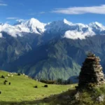 You part with the peaceful village of Gatlang and start out on a scenic uphill hike all the way to the holy lake of Parvati Kunda, with pine trees growing around it with local beliefs. The path goes slowly, and in just a few hours, you are at the sparkling waters of the lake at approximately 2600 meters. People in the area take it as a spiritual area, and the calm and mesmerising beauty of nature makes it very easy to believe. Here, the path leads up to Yuri Kharka, a high pasture on which the yaks are grazing and where the air is cool. Here you take lunch, and you are lost in the bauty of mountains.