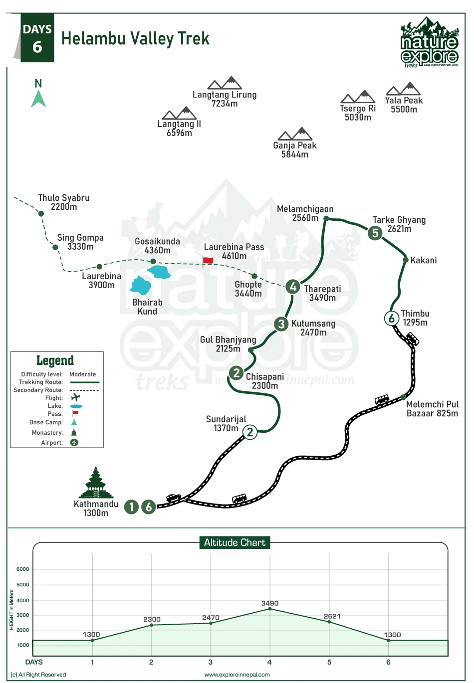 The maximum altitude of Helambu Valley Trek is approximately 3800m.