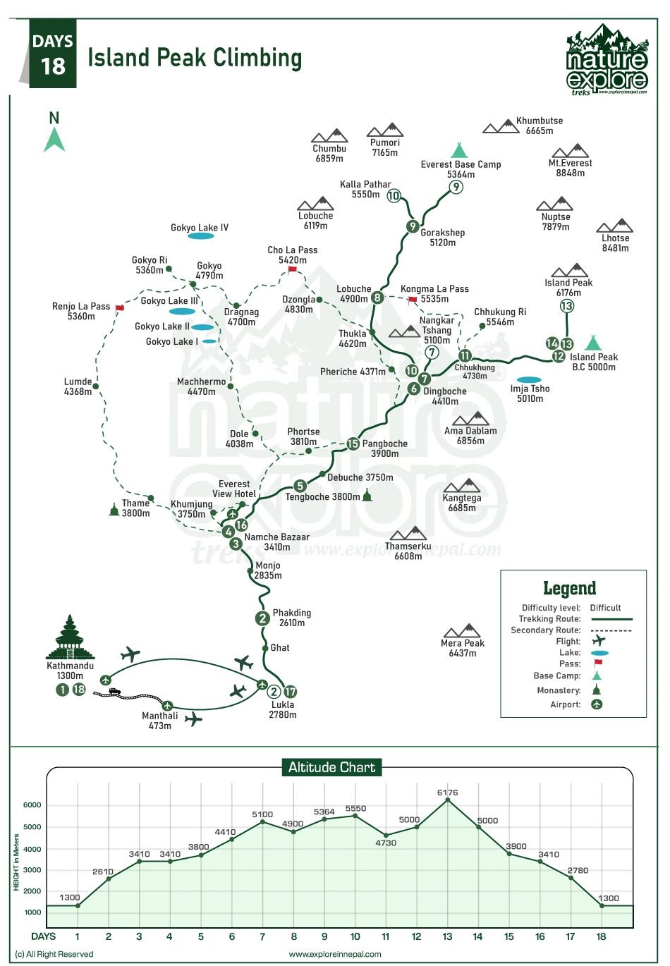While it does not demand advanced technical climbing skills, familiarity with mountaineering equipment such as crampons and harness is essential. The altitude is a major factor in the difficulty, with the summit standing at 6,189 m . The elevation increases the risk of altitude sickness making a proper acclimatization important. Many climbers spend time trekking to higher elevations like Everest Base Camp before attempting the climb .