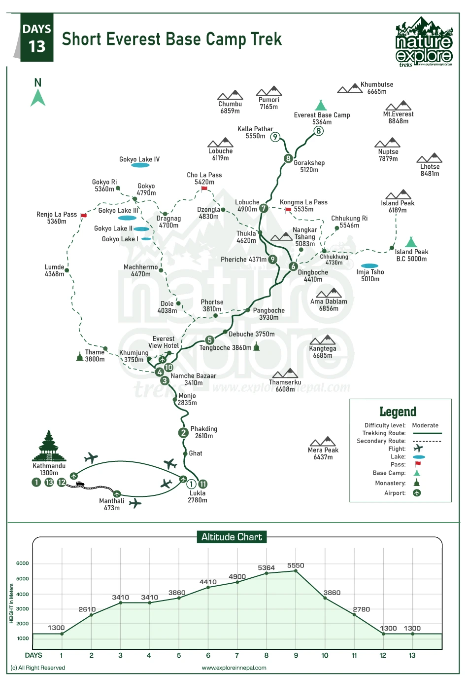 Despite the short Everest base camp trek, this trek is a challenging trek route in the Everest region, as you have to walk 6 to 7 hours every day, and there is unpredictable weather and trekking in the higher altitude in the upper section of this trek. As you are planning this trip quicker compared to the normal itinerary of the Everest Base Camp trek, we highly recommend to all travelers that mental and physical preparation is most important, and on the list you have to start normal training 4 to 6 months before this trek starts.